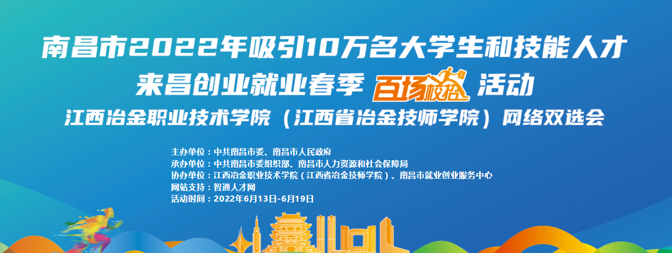本次南昌市2022年吸引10万名大学生和技能人才来昌创业就业春季“百场校招”江西冶金职业技术学院(江西省冶金技师学院)网络双选会,需登录“智通人才网”,进行注册报名并投递简历。
