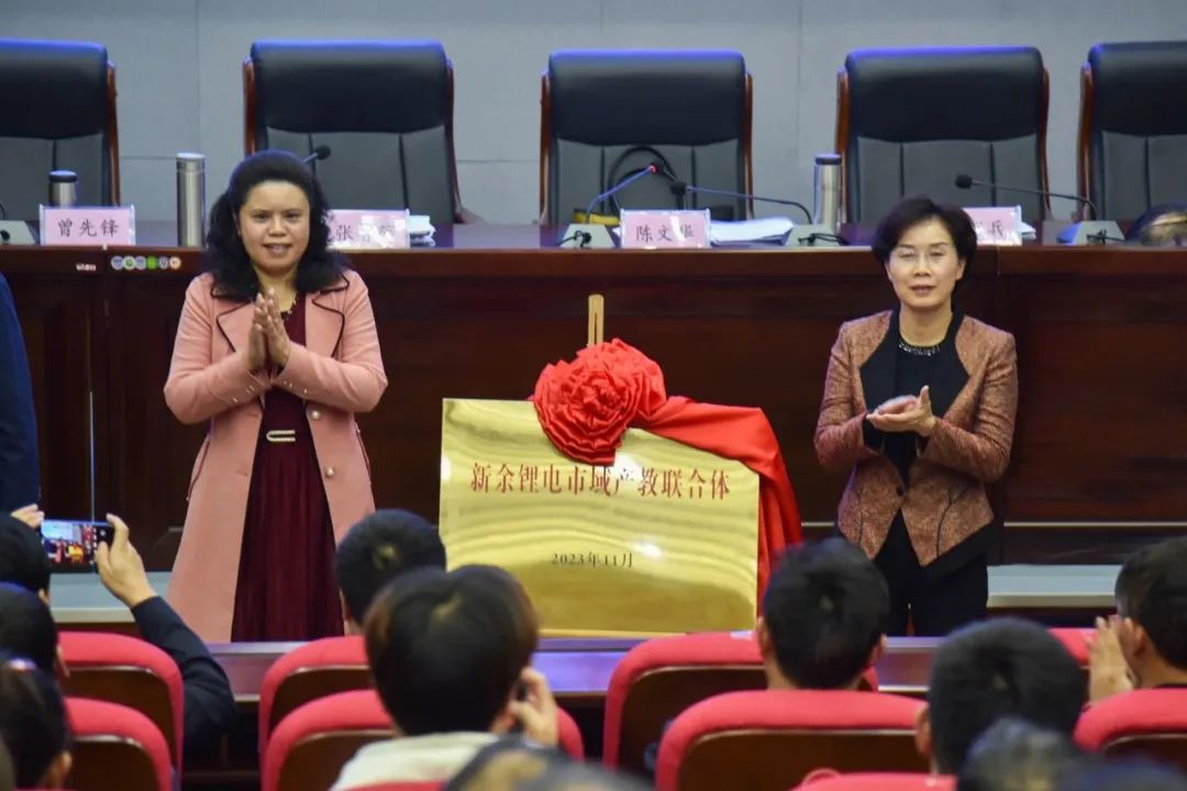 大会举行揭牌仪式,为“新余锂电市域产教联合体”揭牌,为江西赣锋锂业集团股份有限公司与江西冶金职业技术学院共建的“现场工程师产业学院”揭牌,为新余高新技术产业开发区管委会与江西冶金职业技术学院共建的“开放型区域产教融合实践基地”揭牌。