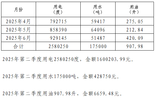 江西冶金职业技术学院2025年第二季度水、电、油能耗公示