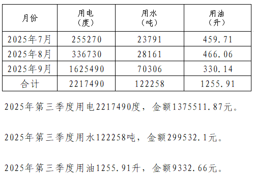 江西冶金职业技术学院2025年第三季度水、电、油能耗公示