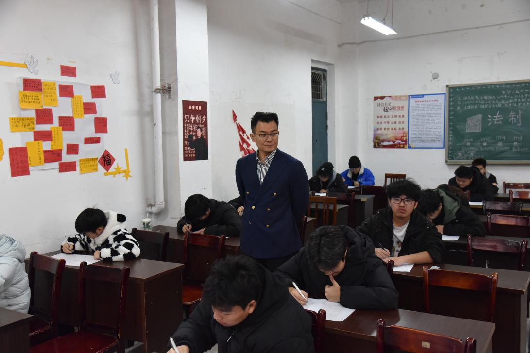 1月19日,学校2025-2026学年秋季学期期末考试首日,学校党委副书记、院长潘山,党委委员、副院长秦昊带队巡查考场,教务科研处处长何志昌及各分院负责人陪同巡考。