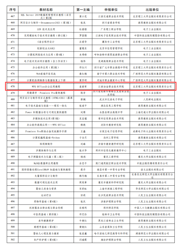 近日,教育部公布了第二批“十四五”职业教育国家规划教材书目。由我校教师袁素琴主编的活页式新形态教材《WPS Office办公应用教程》成功入选,实现了学校在国家规划教材主编领域零的突破,标志着学校“金教材”建设步入新阶段。