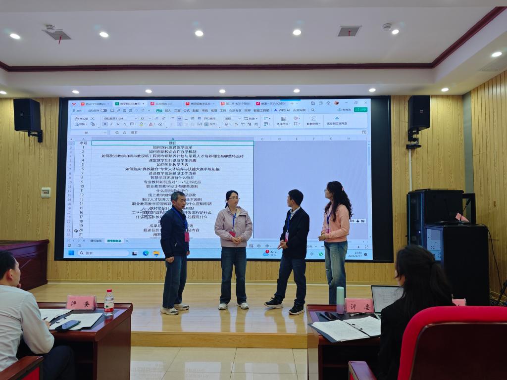 大赛特邀国赛一等奖获得者,江西工贸职院的谢晖、徐艳旻两位专家,与学校三位省赛获奖教师组成评审指导小组,进行精准评审与专业指导。来自7个教学单位的10支教师团队参赛。