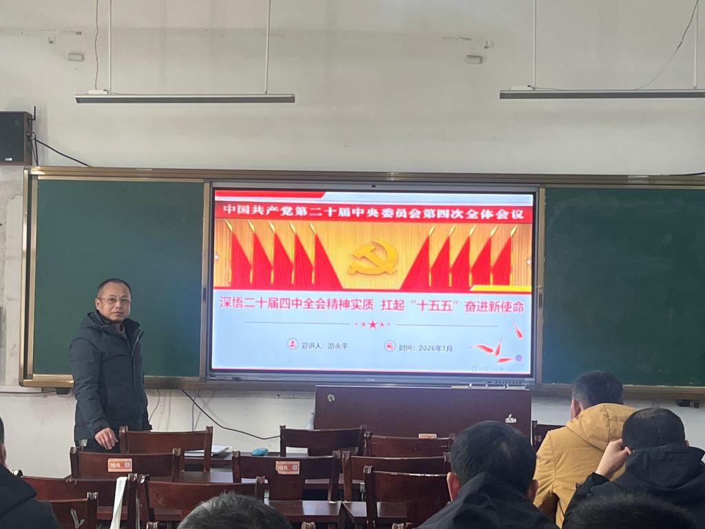 1月13日下午,后勤保障党支部开展党课活动。支部书记游永平为全体教职工宣讲党的二十届四中全会精神。