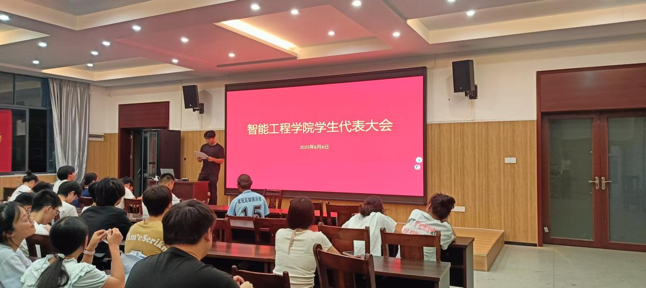 2025年6月8日,在北校区一教501,智能工程学院学生会召开学生代表大会。大会总结了上一学年工作,部署了新学年任务,进行了学生会领导班子换届选举。来自各班级35名学生代表参加会议。