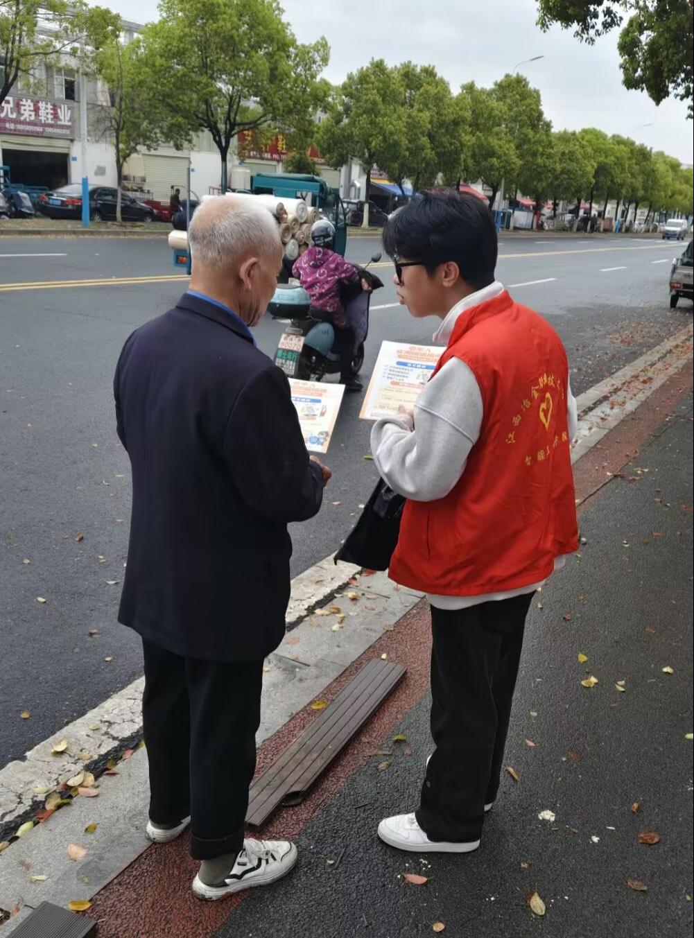 在街头,在社区,志愿者们分发精心制作的宣传页,以亲切易懂的方式,手把手教老年人使用智能手机。从视频通话、扫码支付到防范电信诈骗,每一个环节都细致讲解、反复示范。老人们听得认真,学得开心。志愿者们还走进社区商铺,向居民普及数字生活知识,提供现场咨询与指导。