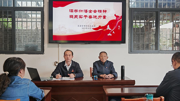 2025年10月28日,商务管理学院党支部组织全体党员、入党积极分子前往新余市渝水区下村镇党员教育基地,开展了“深学细悟全会精神 凝聚实干奋进力量”的主题党日活动。活动由党支部书记唐毓林主持。
