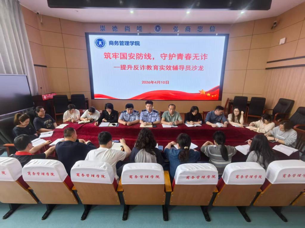 4月10日,在南3教301教室,商务管理学院开展了“筑牢反诈防护墙,护航学生成长路”提升反诈教育实效辅导员沙龙活动。党支部书记唐毓林、副院长江小美出席活动,全体专兼职辅导员、班主任参加,活动由党支部副书记陈利华主持。活动邀请了河下派出所两位负责反诈工作的民警参加。