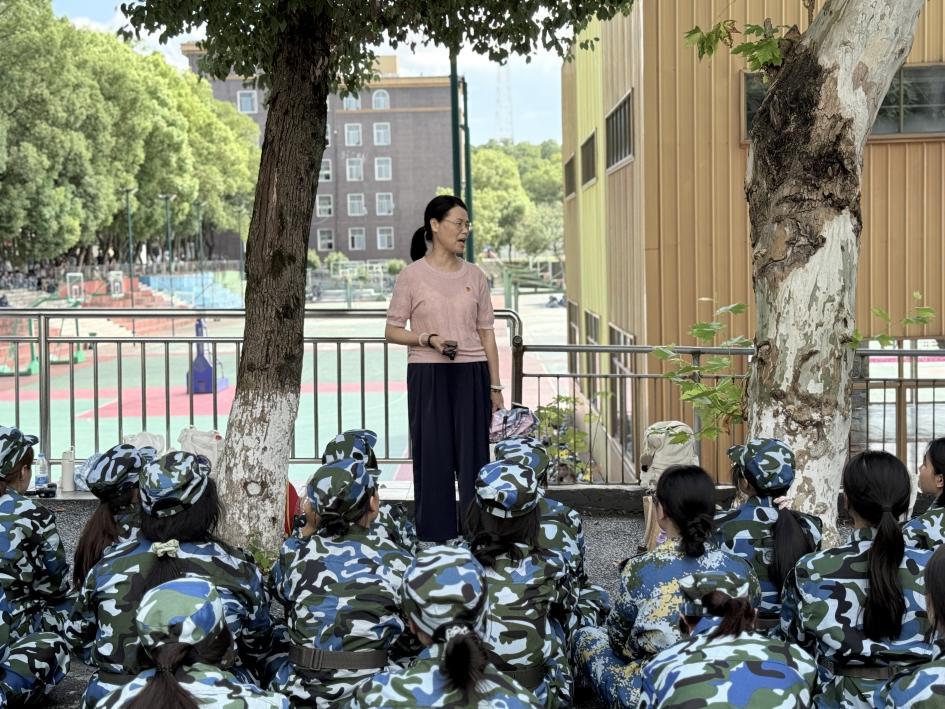 分院党支部书记欧阳小缨多次来到军训现场,面向分院军训新生开展关怀慰问讲话。她详细询问了新生们的训练进度与生活适应情况,叮嘱大家在刻苦训练的同时务必注意劳逸结合,若出现身体不适要第一时间向老师、教官或志愿者反映,学校会全力做好保障服务。同时,她鼓励新生们以军训为契机锤炼意志、磨砺品格,快速融入集体生活,展现新时代青年的朝气与担当。