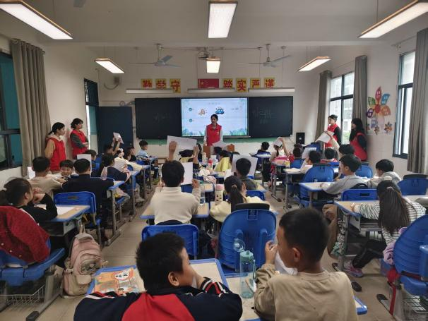 【现代服务学院徐卉报道】2026年4月14日,谷雨时节,现代服务学院“小灯塔”志愿服务队走进河下小学,开展“七彩课堂”之“黄色课堂”主题实践活动,与孩子们在趣味体验中感受“雨生百谷”的自然变化节律和古人智慧。
