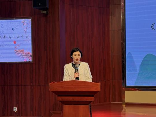 现代服务学院副院长江敏致辞。她指出,分院为探索传统文化传承与美育实践融合之路,策划了此次活动,旨在让师生领略古琴艺术魅力,提升审美感知,增强对中华优秀传统文化的认同感、自豪感,涵养高尚品格、提升人文素养。她感谢孟洹羽老师及其团队,为师生带来一场文化盛宴。