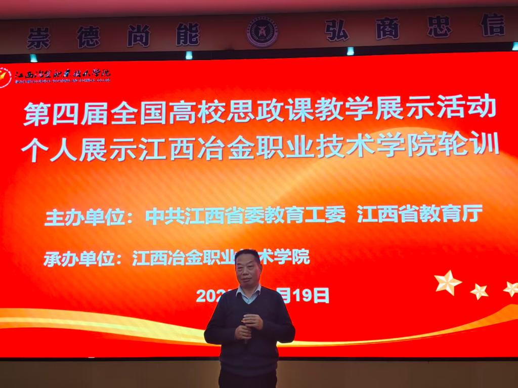 2025年12月19日,“第四届全国高校思政课教学展示活动个人展示(江西代表队)轮训”在我校顺利举行。来自全省各高校的27名思政教师在轮训中进行了展示。五名省厅专家组成员受邀参加,组成评审组对受训教师的展示进行指导。轮训由中共江西省委教育工委、江西省教育厅主办,我校马院承办。