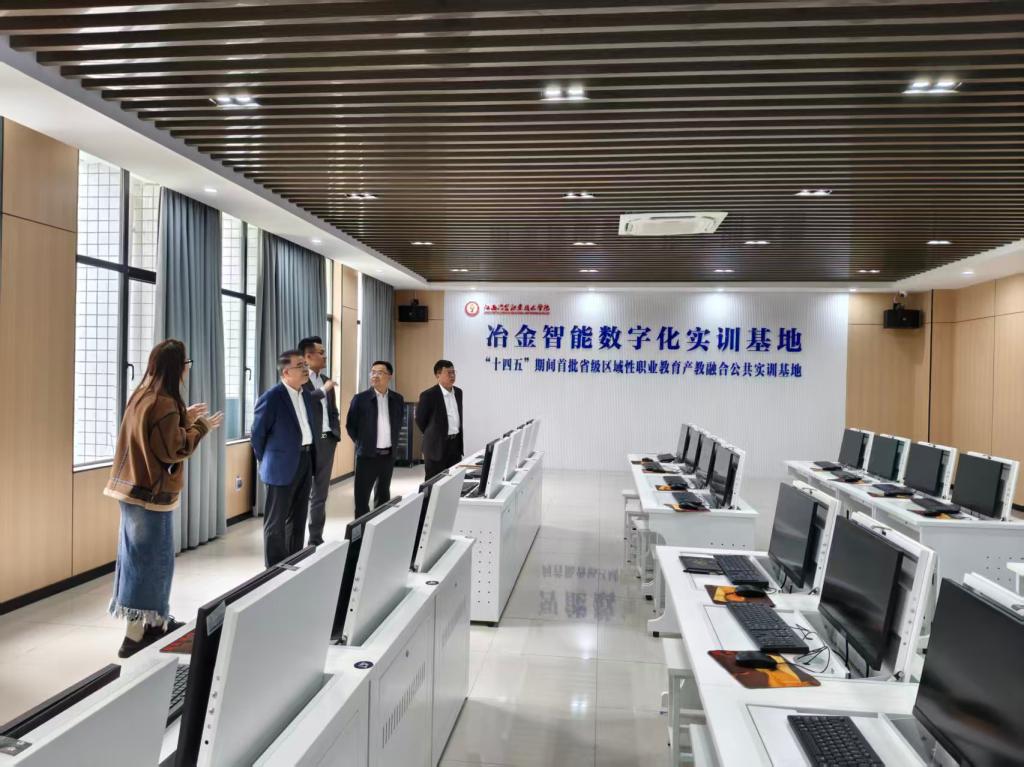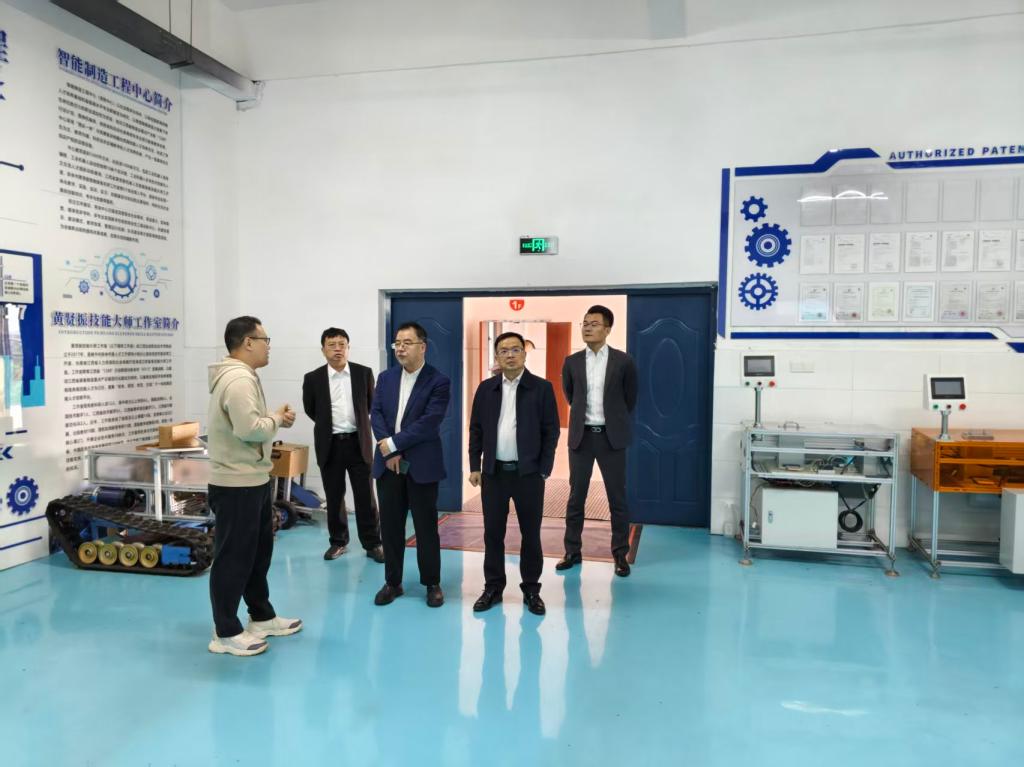 座谈会后,在秦昊的陪同下,客人参观了冶金智能数字化实训基地、工业机器人工作室、黄辉机电技术技能大师工作室等。