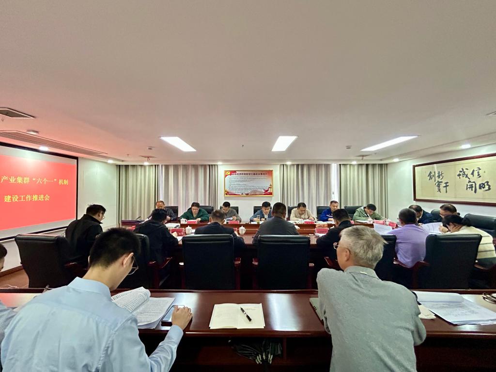 会议总结了渝水区产业集群“六个一”机制的建设情况,展示了取得的成效与面临的挑战。参会人员进行了交流发言。