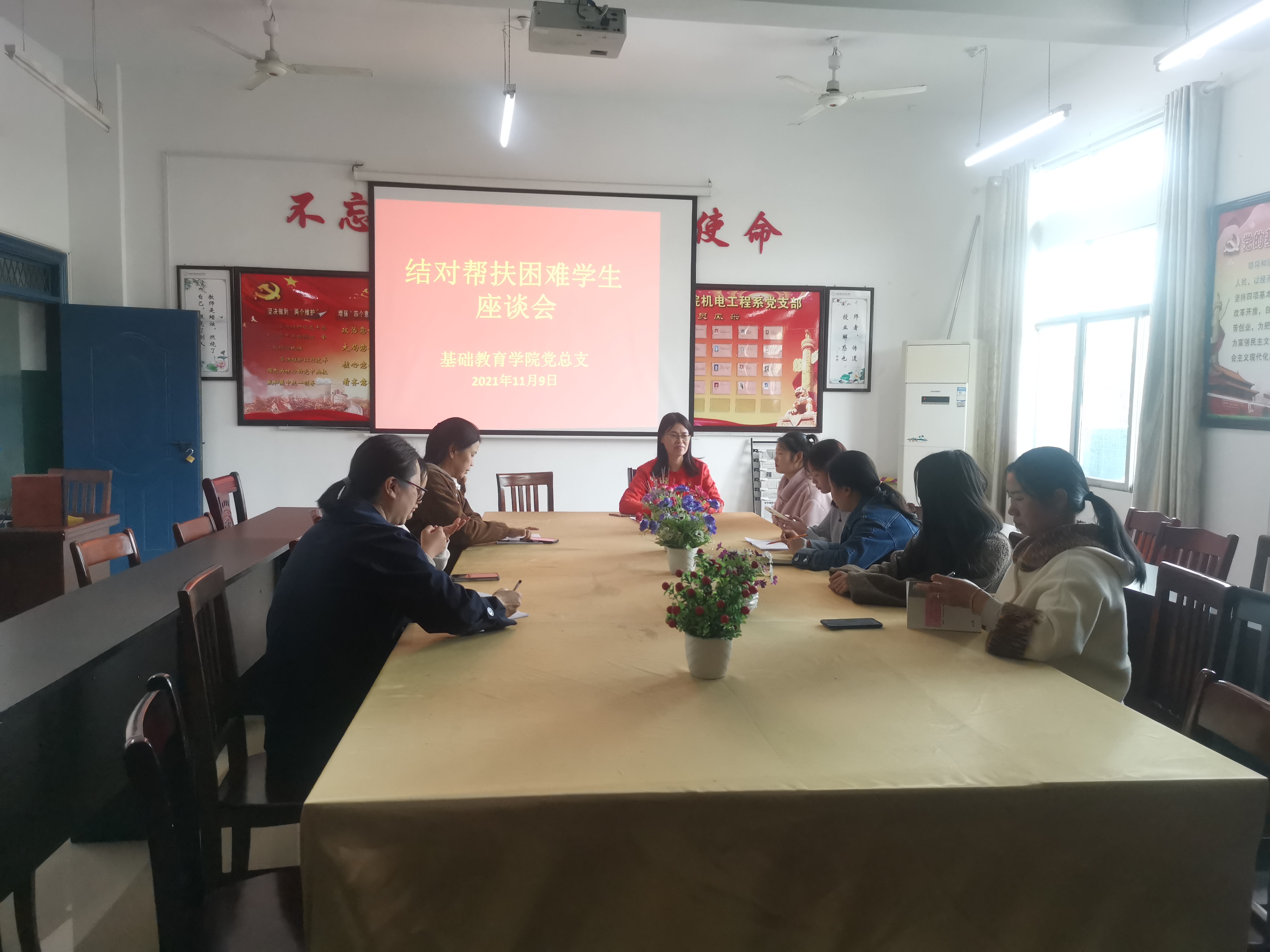 【基础教育学院徐卉报道】为贯彻落实学校党委“我为群众办实事”实践活动专题工作会精神,构建新型的师生关系,充分发挥党员的先锋模范作用。基础教育学院党总支于11月9日在老三教党员活动室开展了“党员与困难学生结...