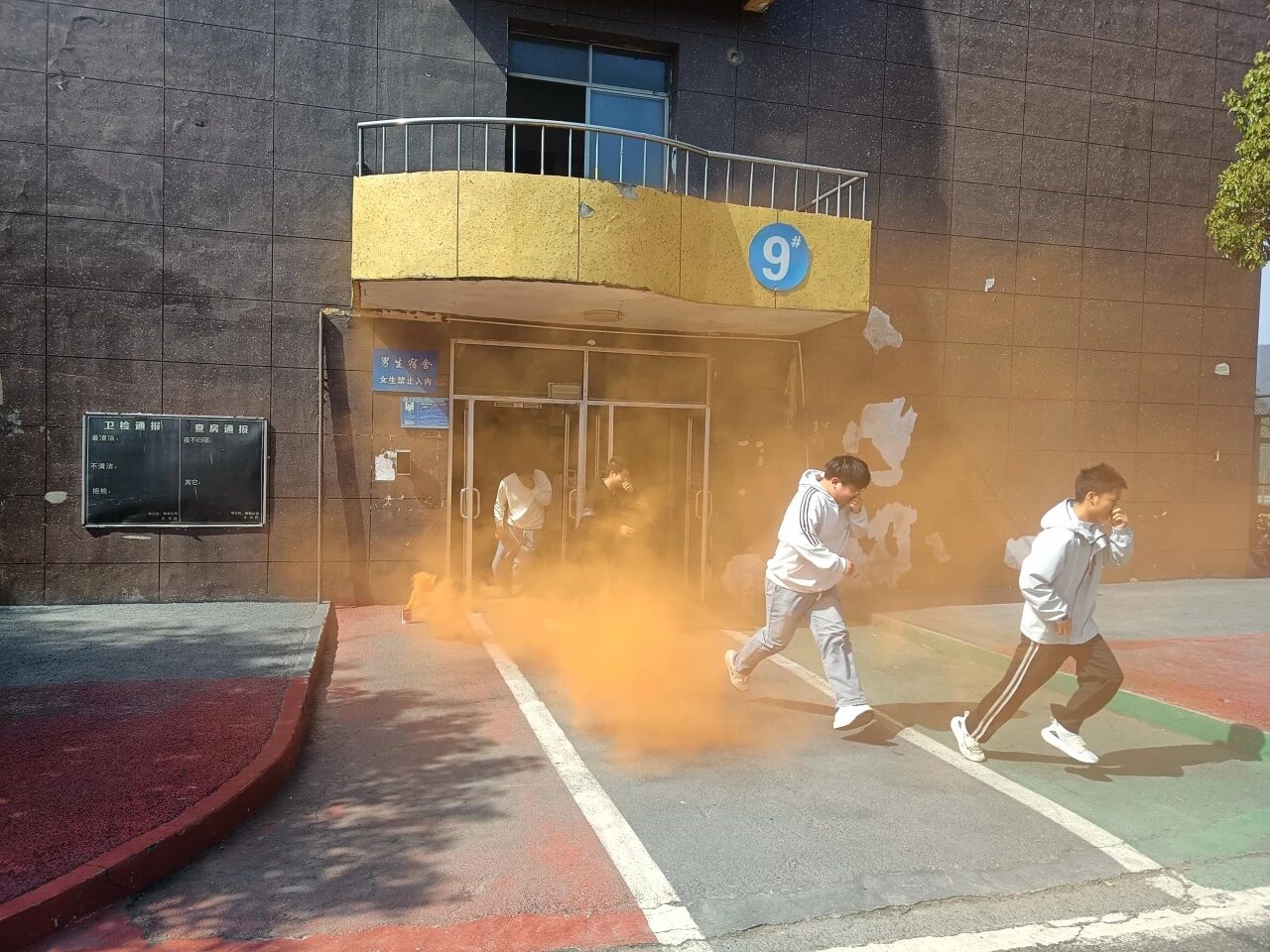 3月13日上午,在北9栋宿舍楼,数字产业学院开展了一场“无脚本”消防应急疏散演练活动。随着急促的消防警报声在宿舍楼内响起,消防应急逃生演练正式启动。各寝室学生迅速反应,第一时间用湿毛巾、衣袖等捂住口鼻,弯腰低姿紧贴墙壁,快速、有序地向宿舍楼空旷的安全区域撤离。楼道、转角、楼梯口等关键点位的引导教师和志愿者全程值守,及时疏导人流,提醒学生不推搡、不慌乱、不逆行、不逗留。整个疏散过程紧张有序、配合默契...