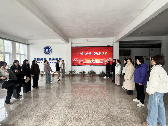 2026年3月5日上午,春意渐浓,阳光正好。为庆祝第116个“三八”国际劳动妇女节,商务管理学院分会在南校区三教一楼大厅举办了“巾帼心向党,奋进新征程”主题系列活动。分院26名女教职工欢聚一堂,在轻松愉快的氛围中度过了一个温馨而有意义的节日。活动在简短而温馨的开幕式中拉开帷幕。分院党支部书记唐毓林向全体女教职工致以诚挚的节日问候,感谢大家在教书育人、管理服务等岗位上的默默耕耘与辛勤付出。随后进行的“毽舞飞...