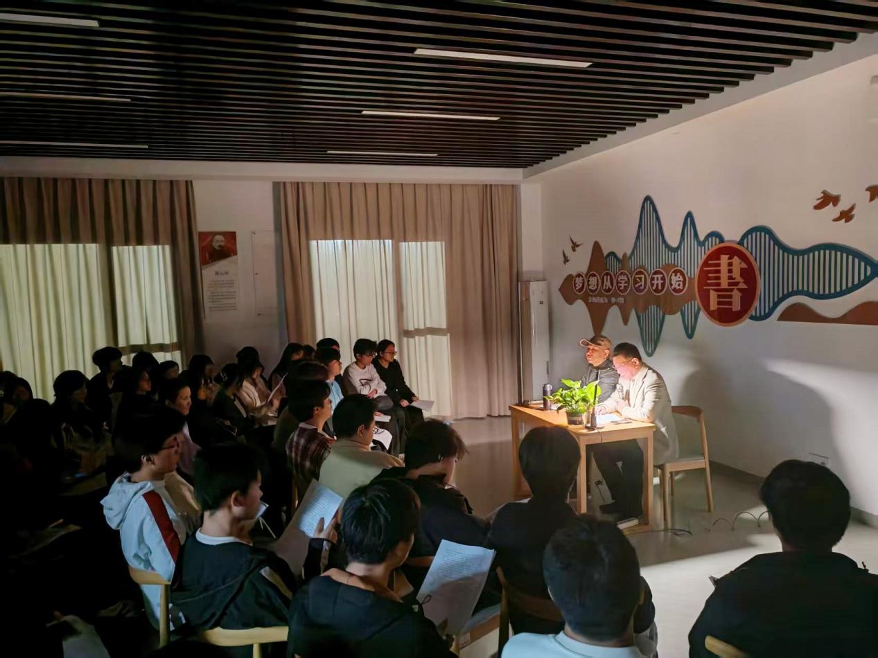4月23日晚,在大学生一站式服务社区知行书苑,学校图书馆举办“阅享青春”读书会第八期——读者分享会活动,邀请全民阅读活动“读者”领读者罗荣海老师分享读书体会。70余名学生参加。本次分享的内容是《读者》杂志2026年第2期刊载的文章《三次“我愿意”》。在主持人简短介绍后,首先进入“大家读”环节。由在场学生一人一段接龙诵读文章,大家在朗读中了解核物理学家王承书一生三次以“我愿意”回应祖国召唤,用一生奉献诠释...