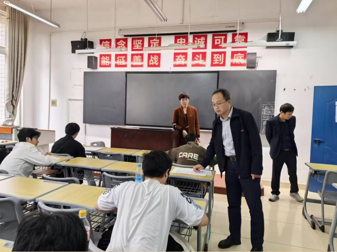 日前,学校2025-2026学年秋季学期期中考试顺利进行。10月31日,考试首日,学校党委副书记、院长潘山巡查了考场,党委委员、副院长秦昊一同巡查,教务科研处处长何志昌、副处长袁亦龙及各分院负责人参加巡考。校领导带队全面巡查了各分院考场的考务安排落实、考场环境布置、纪律维护举措及考生考风等情况,察看学生的应试状态与答题表现,并向监考教师了解考试相关动态。考前,学校对本次考试提出了严格要求,教务处制定了周密的...