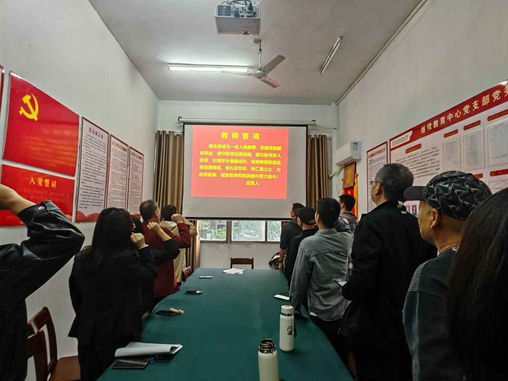 4月21日下午,在明辨楼115党员活动室,继续教育与培训学院组织开展“践行教育家精神,严守师德师风”宣誓承诺活动。活动由党支部书记郭永飞主持,全体教职工参加。活动分集中学习、庄严宣誓和签署承诺书三个环节。在集中学习环节,全体教职工认真学习了《新时代高校教师职业行为十项准则》等重要文件,进一步明确了职业行为规范与底线。在支部书记带领下,全体教师面向宣誓台庄严宣读教师誓词,表达了忠诚教育事业、恪守师德规...