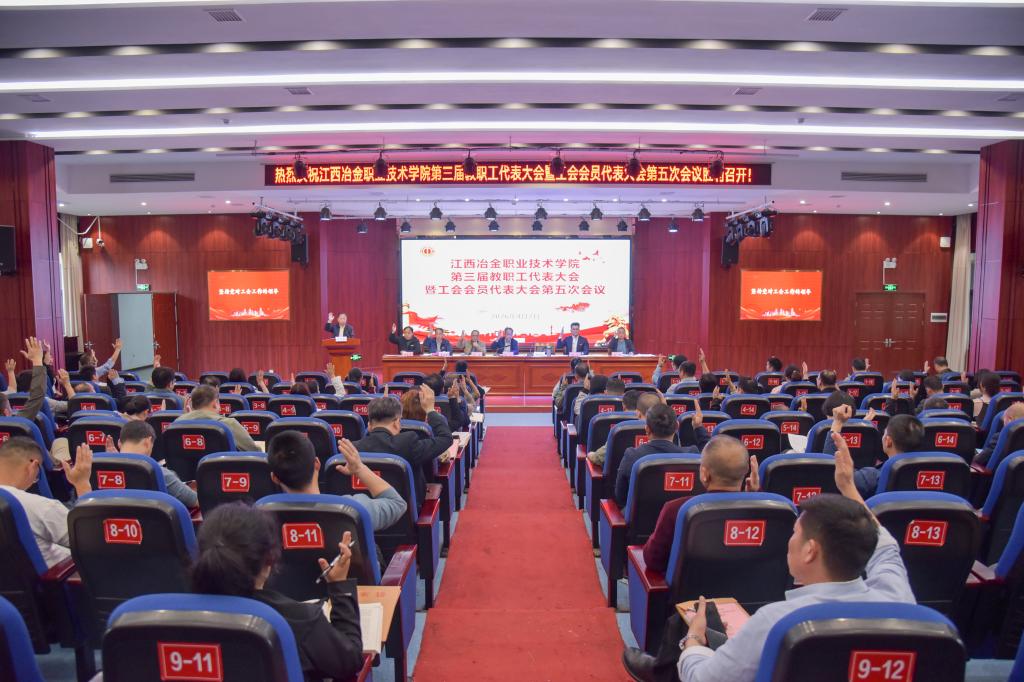4月7日,学校第三届教职工代表大会暨工会会员代表大会第五次会议在学术报告厅隆重召开。在家的校领导班子成员出席会议,正式代表、列席代表共117人参加了大会。会议由党委副书记、工会主席李茂旺主持。大会在庄严的国歌声中拉开序幕。大会现场江西冶金职业技术学院院长潘山作题为《奋楫争先 聚力笃行 以实干实绩谱写学校高质量发展新篇章》的工作报告。报告从八个方面总结了2025年学校各项工作所取得的成绩,指出了不足。报告明...