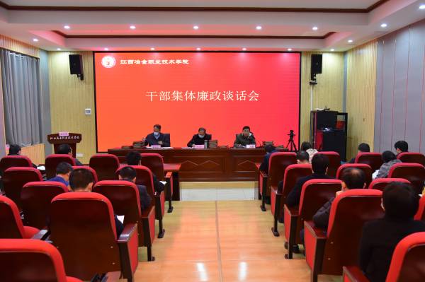 (纪委办范妍琼)为认真学习贯彻习近平总书记在中青年干部培训班开班式上的重要讲话精神,从严从实推进党风廉政建设,提高党员干部廉洁自律意识,近日,江西冶金职业技术学院纪委召开干部集体廉政谈话会议,敲响党员干部忠诚干净担当履职警钟。学院党委副书记李茂旺,党委委员、纪委书记谢向莹,党委委员、组织部部长曹春宜出席会议。会上,谢向莹围绕做好“四种人”这个主题与学院各党支部书记、青年干部、新任职中层干部及部...
