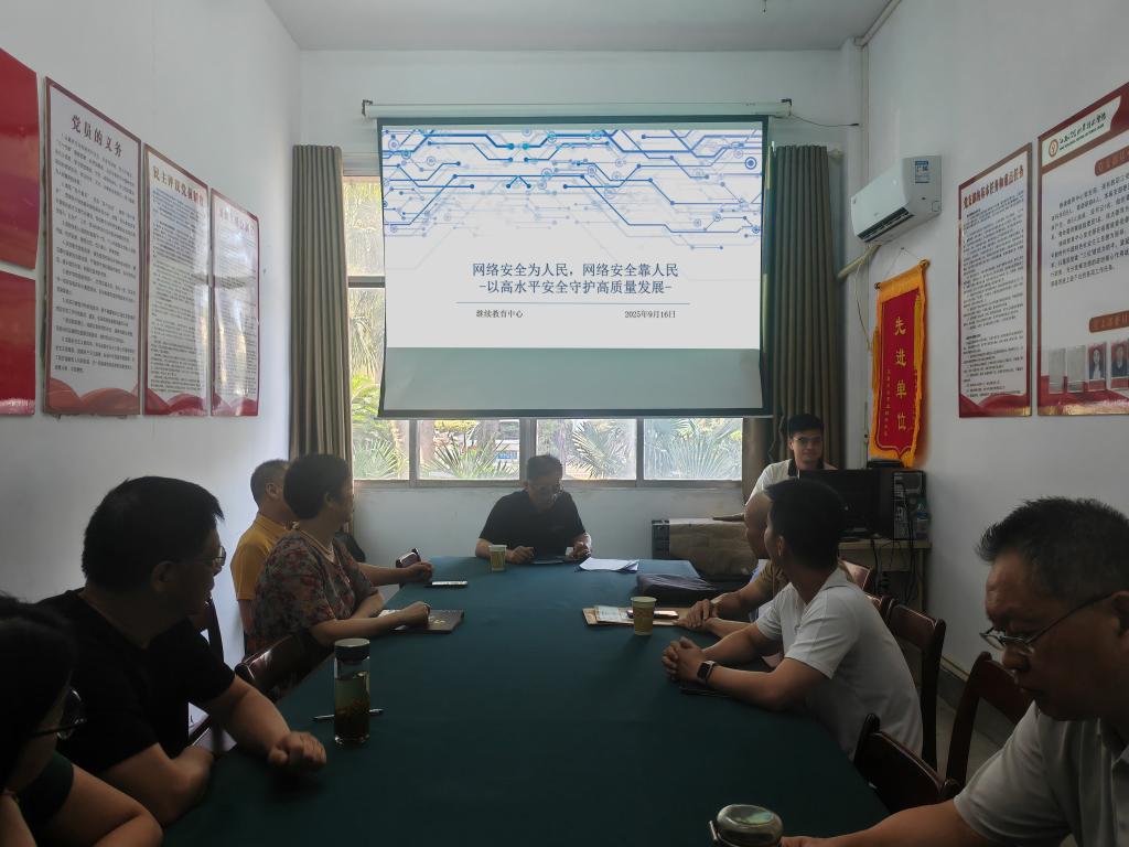 9月16日下午,在明辨楼115党员活动室,继续教育中心开展了以“网络安全为人民,网络安全靠人民”为主题的国家网络安全宣传周活动。活动由党支部书记彭德胜主持,中心全体教职工参加。活动集中组织学习了《中华人民共和国网络安全法》《中华人民共和国数据安全法》等重要法律法规,并观看了网络安全宣传教育视频。彭德胜讲话。他指出,信息技术在带来便利的同时也伴随着诸多安全隐患,如信息泄露、网络诈骗和黑客攻击等。全体教...